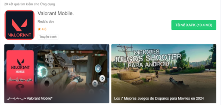 Bước 2: Tìm kiếm “Valorant Mobile APK” và chọn phiên bản mới nhất.
