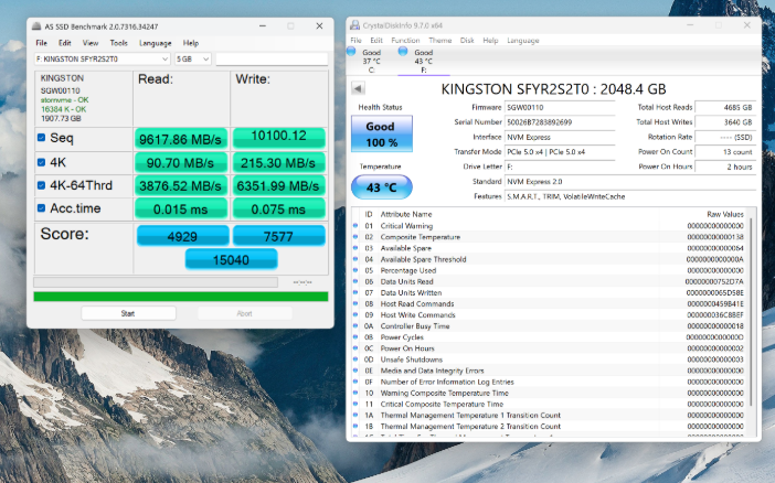 Thêm vào đó, nhiệt độ hoạt động chỉ dao động từ 40–53°C, nhờ controller SM2508 tối ưu tỏa nhiệt và thiết kế mạch tốt. Đây là con số ấn tượng nếu so sánh với những mẫu Gen 5 đời đầu từng vượt ngưỡng 70°C khi hoạt động liên tục.