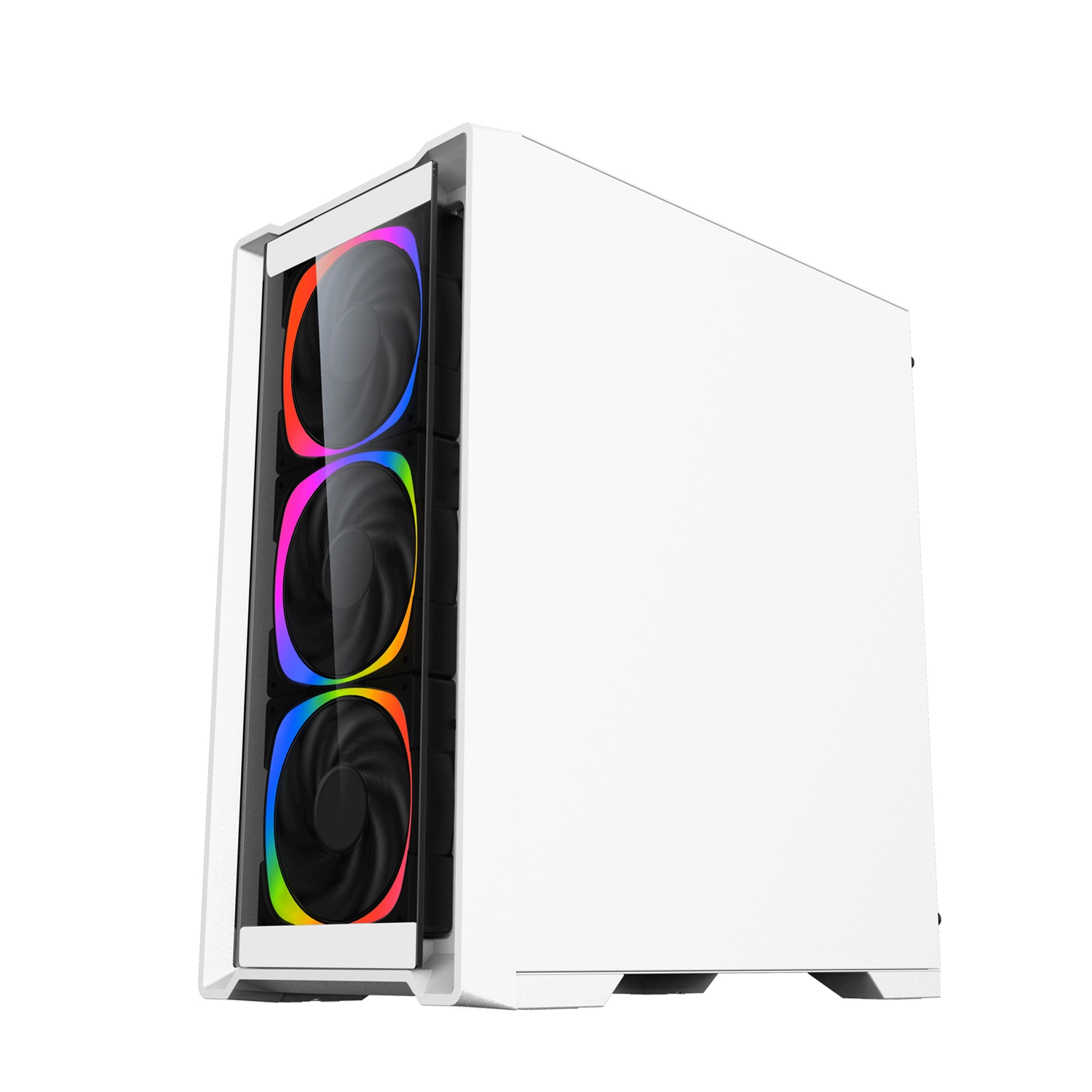 KENOO ESPORT MK500 có hệ thống làm mát 3 quạt 12cm mặt trước, 1 quạt 12cm mặt sau có đèn RGB cầu vồng cố định.