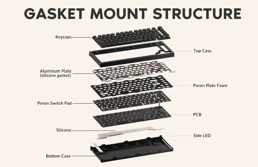 - Cấu trúc Gasket Mount + Plate PC mang lại cảm giác gõ đều và êm.