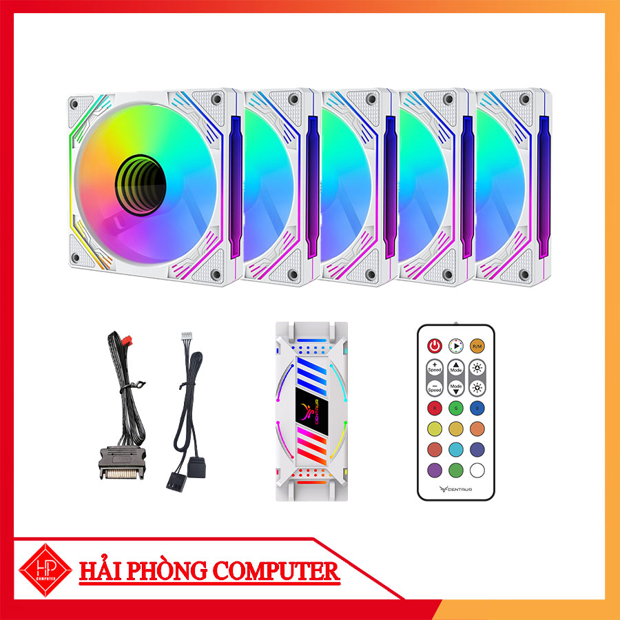 COMBO 5 FAN LED RGB CENTAUR AR-CT8600 2 MÀU TRẮNG/ ĐEN + HUB KHIỂN