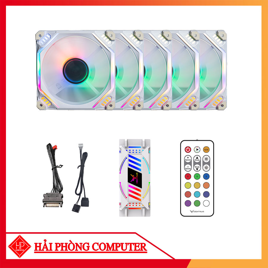 COMBO 5 FAN LED RGB CENTAUR CT 09 2 MÀU TRẮNG/ ĐEN + HUB KHIỂN