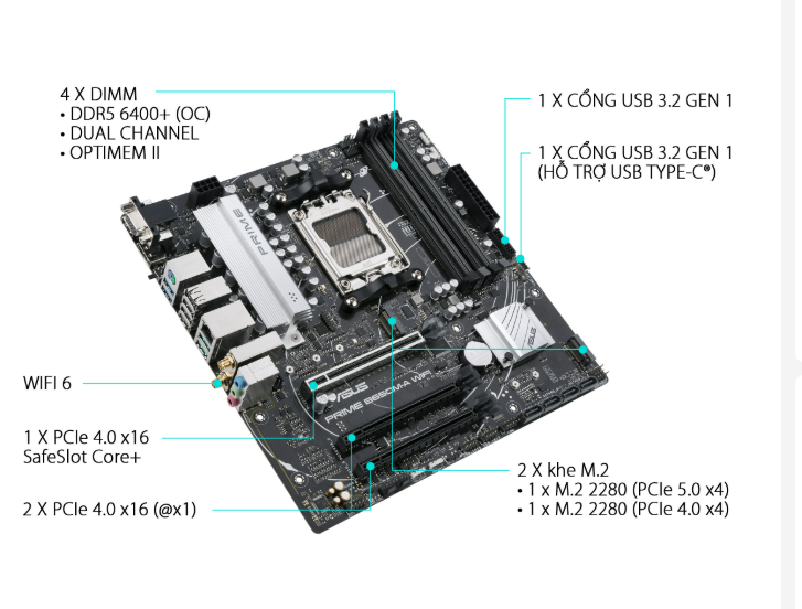 Với mức giá hợp lý và loạt tính năng cao cấp, ASUS PRIME B650M-A WIFI-CSM là lựa chọn lý tưởng để bạn: