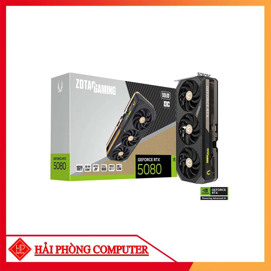 Card màn hình ZOTAC GAMING GeForce RTX 5080 SOLID OC là một trong những dòng GPU mạnh mẽ nhất hiện nay, được trang bị kiến trúc tiên tiến cùng bộ nhớ GDDR7 16GB và băng thông 256-bit. Với xung nhịp lên đến 2640 MHz, hỗ trợ PCI-E 5.0, sản phẩm này mang lại hiệu suất vượt trội cho gaming, đồ họa và các tác vụ AI.