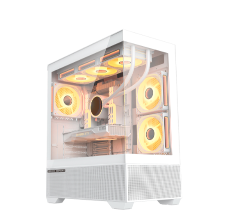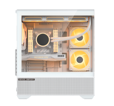 Kenoo AK400 phiên bản màu trắng mang đến vẻ ngoài tinh tế và đậm chất gaming. Tông trắng chủ đạo kết hợp cùng mặt kính cường lực full size bên hông giúp khoe trọn linh kiện bên trong, đặc biệt khi kết hợp với hệ thống LED ARGB.