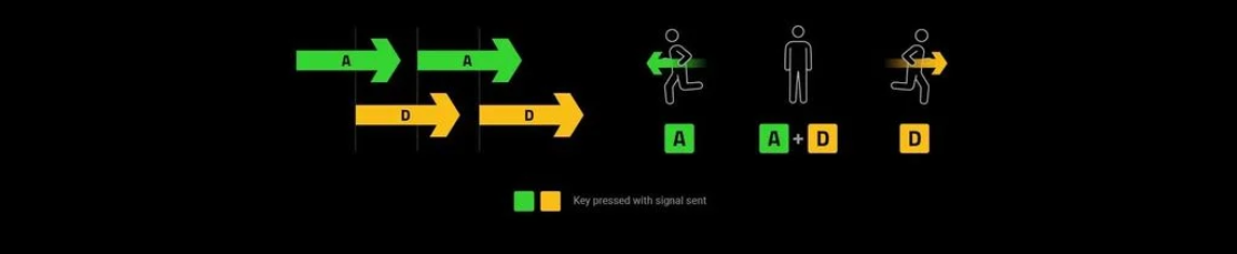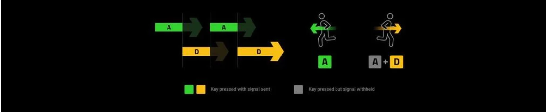 Với Snap Tap, bàn phím sẽ ưu tiên tín hiệu từ phím D, giúp nhân vật tiếp tục di chuyển mượt mà mà không bị gián đoạn. Điều này cải thiện khả năng điều khiển nhân vật trong game, giúp game thủ có thể thực hiện các thao tác chính xác và nhanh chóng hơn.