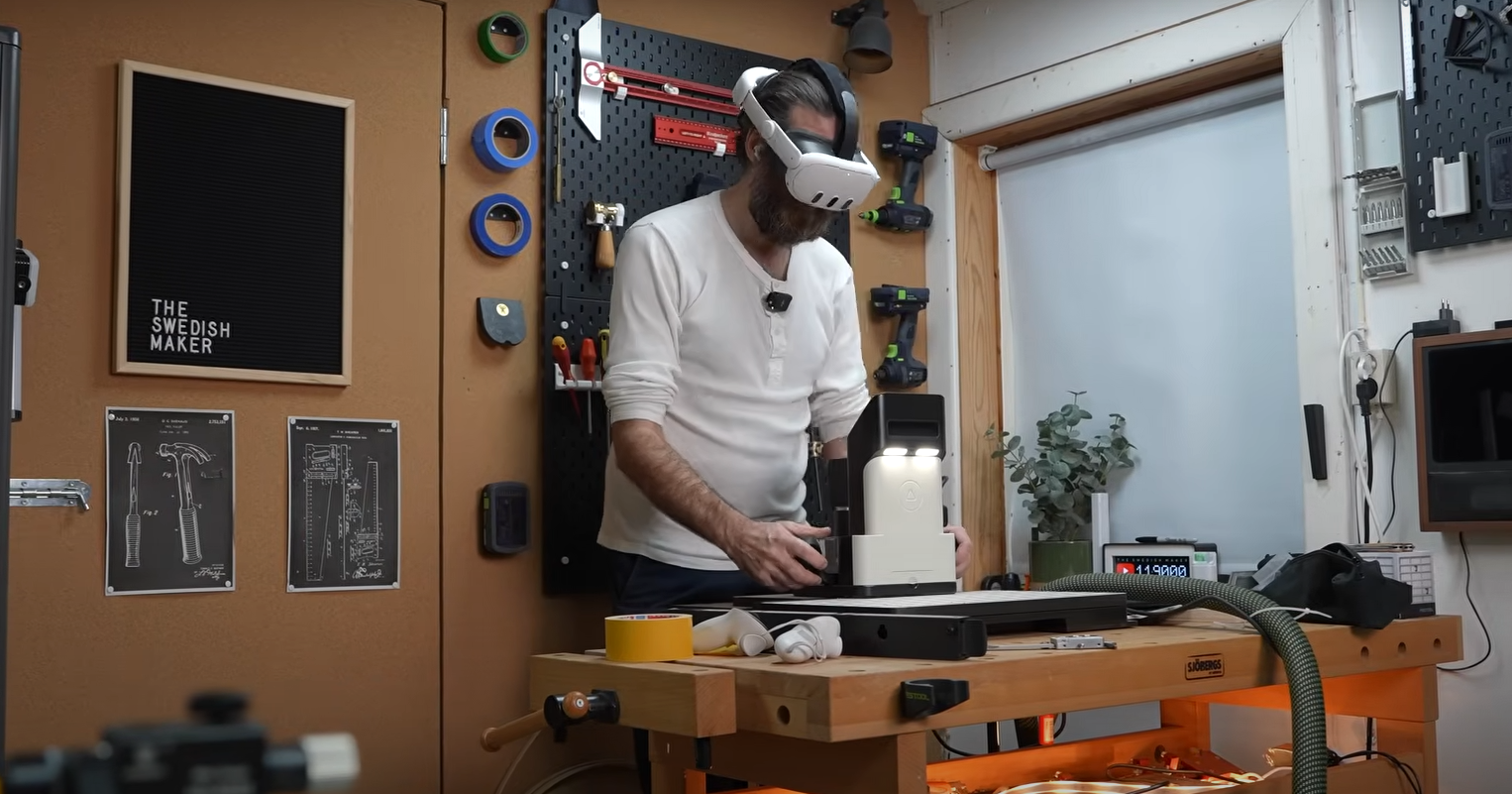 Bất chấp điều đó, The Swedish Maker vẫn quyết định đeo kính VR từ đầu đến cuối trong quá trình chế tạo chiếc tủ đầu giường có ngăn kéo. Đối với những ai chưa từng làm mộc, đây không phải là một dự án dễ dàng—và rõ ràng, việc đeo một thiết bị VR trong suốt quá trình chỉ làm cho mọi thứ khó khăn gấp bội.